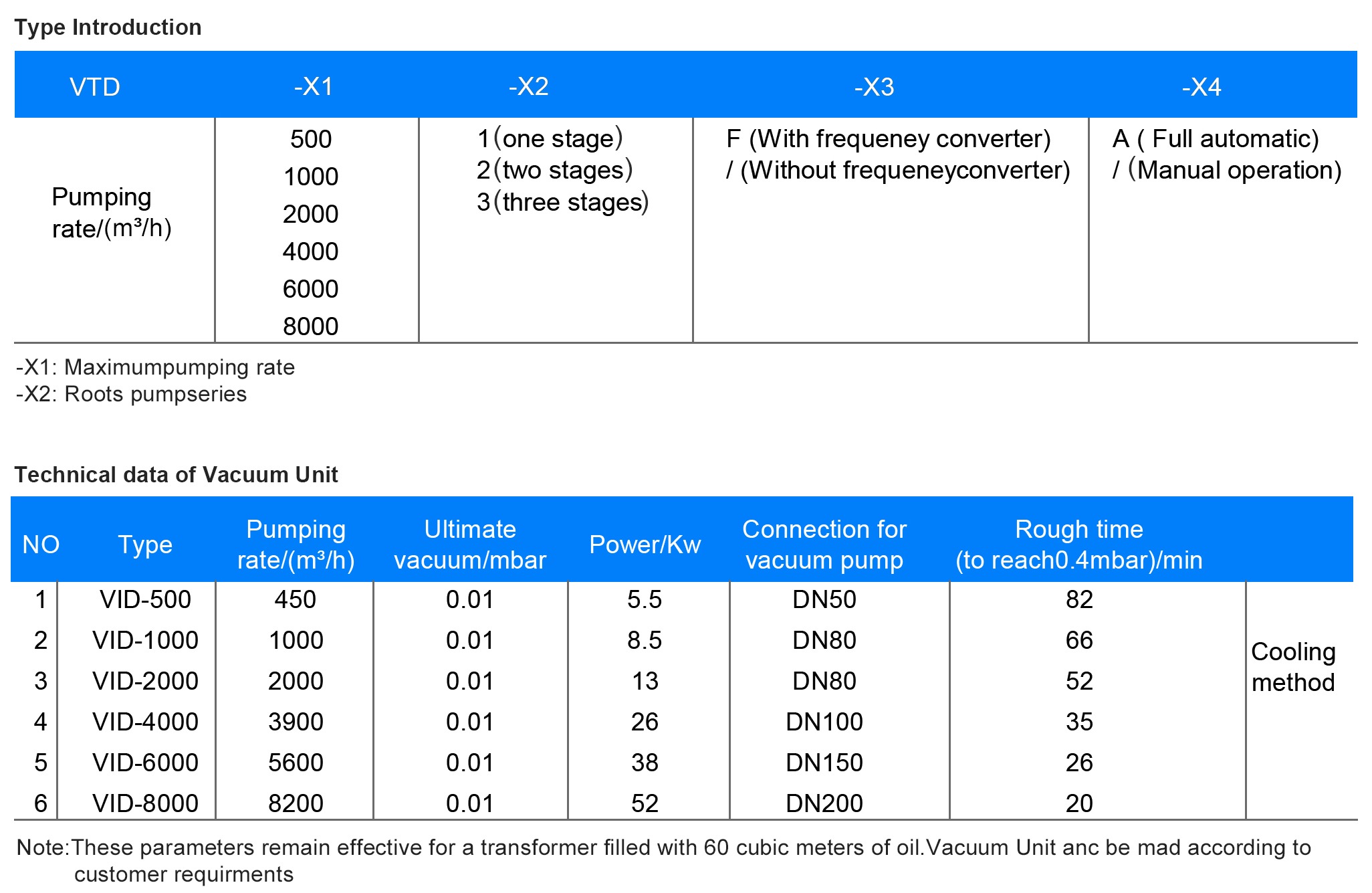 - Evacuation, drying of electrical equipment such as power transformer and electric reactor
